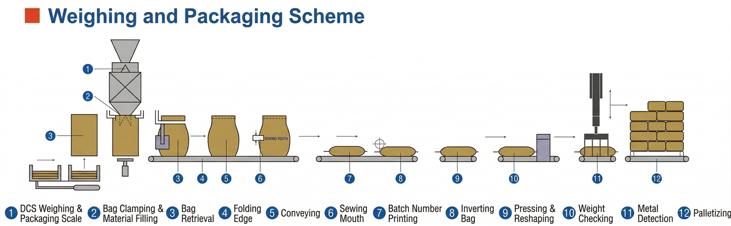 Chemical powder packaging, pharmaceutical raw material packaging, flour milling.