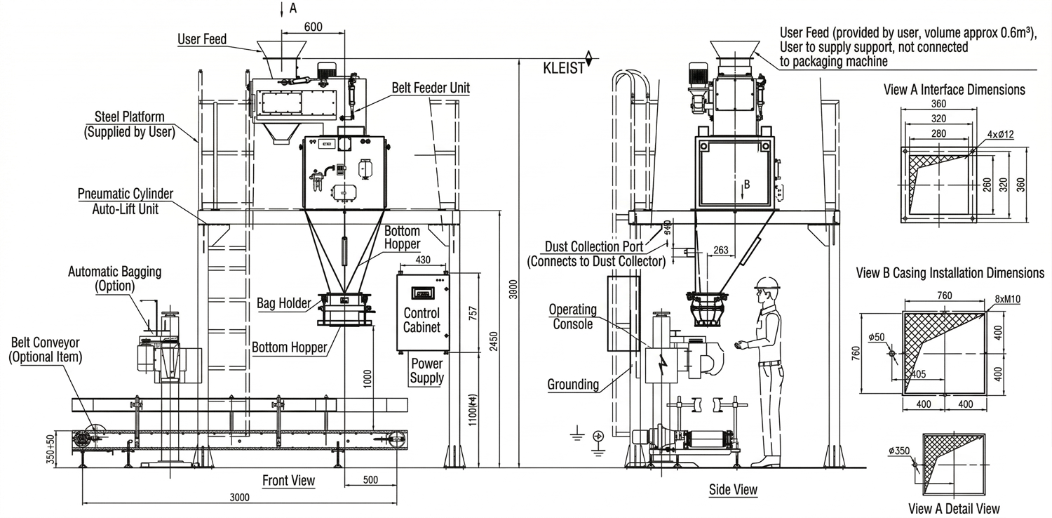 – Node-type bag clamp; special-shaped bag outlet supported
